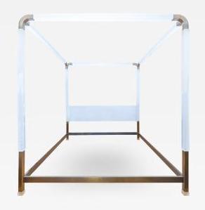 Charles Hollis Jones (Signed and Authenticated) Waterfall Lucite and Brass King Size Bed