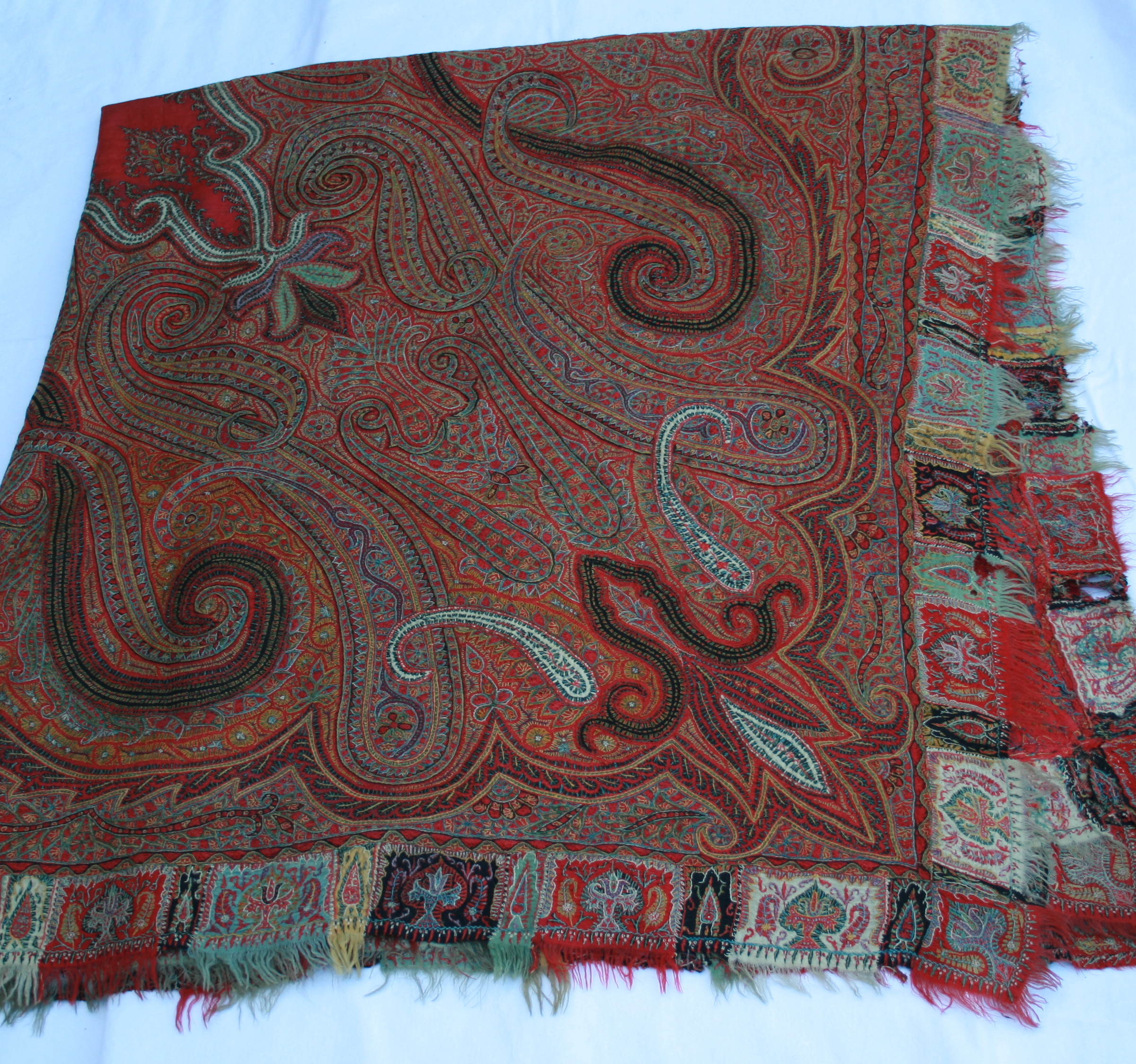 Antique hand embroidered Kashmir paisley shawl